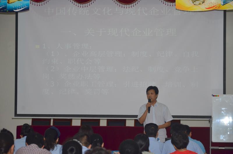 2016年8月27日上午,宇王集團在海洋生物館二樓大會議廳舉行管理干部培訓,公司全體管理干部參加培訓。威海晚報前編輯部鞠世強主任擔任主講。培訓上,鞠主任對中國傳統(tǒng)文化中的儒家、道家、墨家思想進行了講解,結(jié)合現(xiàn)代企業(yè)管理,深入闡述了管理干部在企業(yè)中應當展現(xiàn)的素質(zhì)與方法,此次培訓規(guī)范了公司管理干部的責任意識,進一步維護了公司的管理水準。