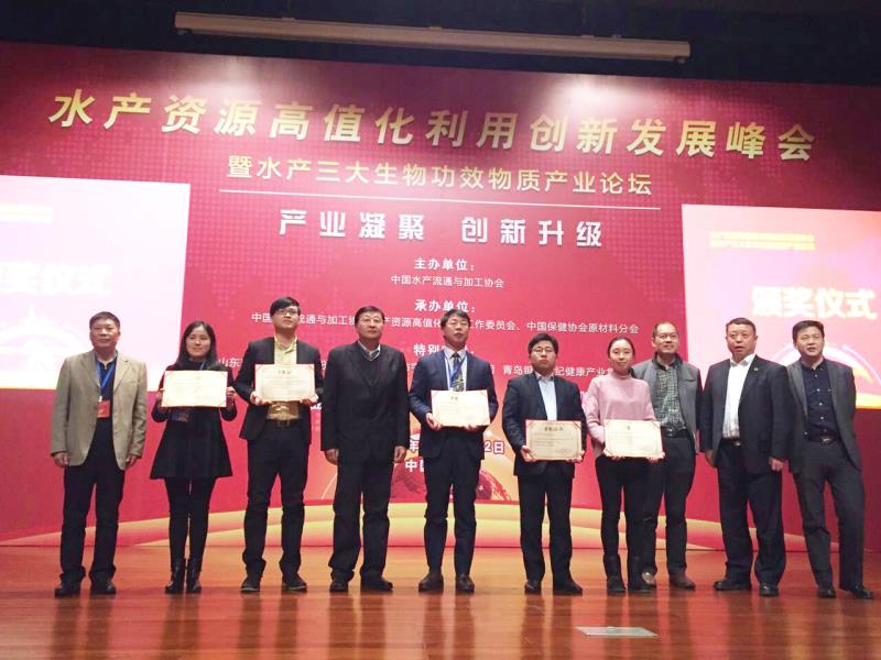 此次峰會對水產資源高值化利用領域的創新及優秀產品進行新聞發布,經過企業申報、高值化利用委員會審查、認定、投票及公示的流程,最終認定出5個創新產品及11個優秀產品。我公司榮獲2項創新產品獎、2項優秀產品獎,其中魚鱗膠原蛋白肽粉及海參肽粉被評為創新產品、魚鱗膠原蛋白及海參飲品被評為優秀產品,并在現場進行了產品展示。