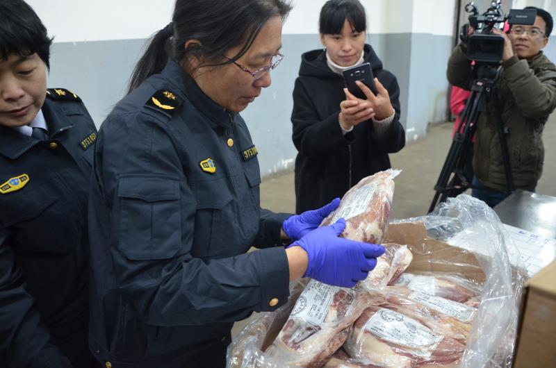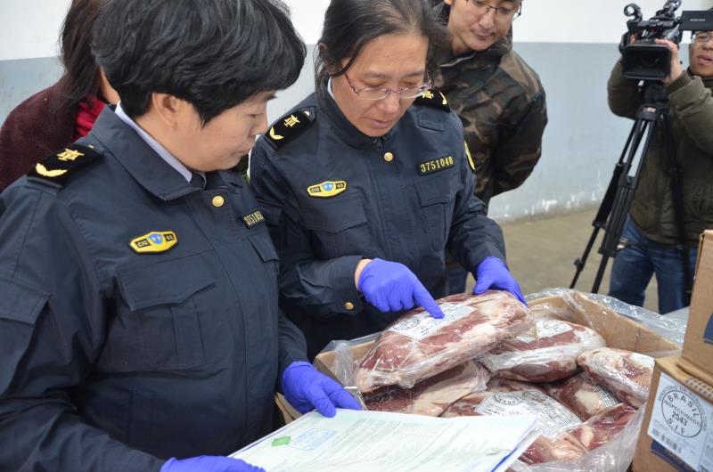 該批牛肉為冷凍牛腱子肉,原產國為巴西,重量約為26噸,這是威海港口岸獲得進口肉類指定口岸資質后,首次開展進口肉類業務。山東威海檢驗檢疫局工作人員來到宇王保稅倉庫,現場核查該批貨物的內外包裝、標識與證書內容的一致性,經檢驗檢疫合格后,該批牛肉即可投放國內市場。