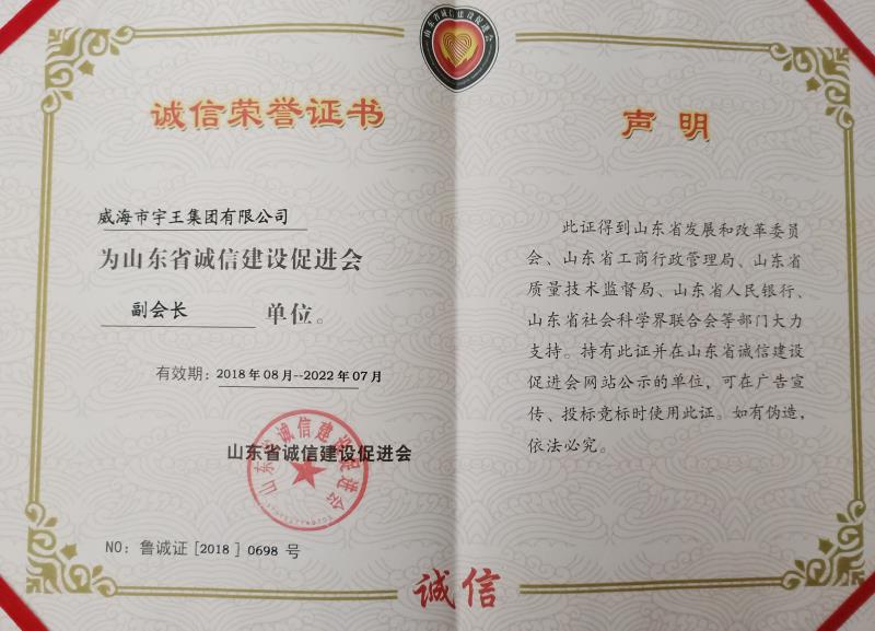 熱烈祝賀宇王集團董事長、總經理苗強先生當選為山東省誠信建設促進會副會長