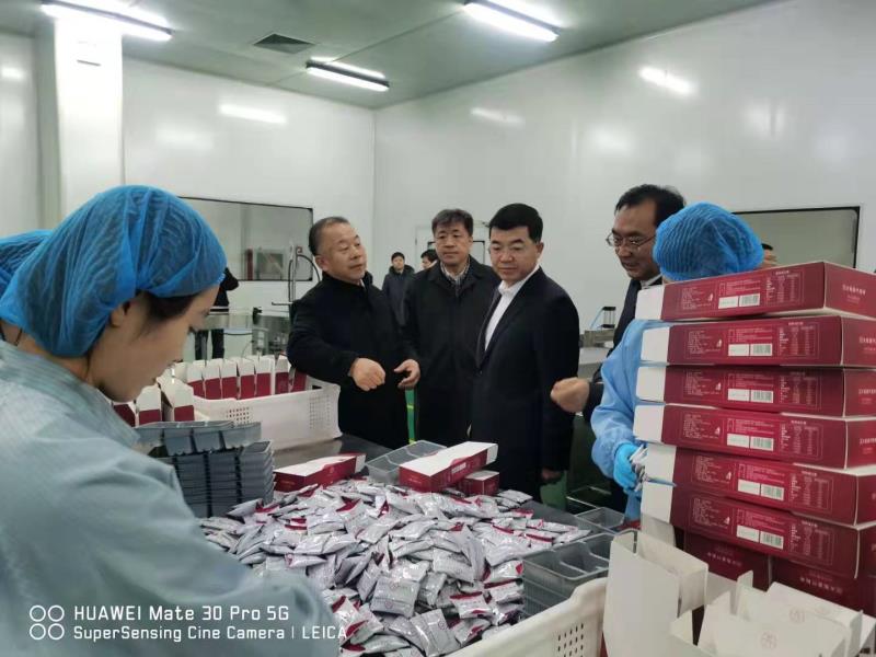 115,威海市委副書記、市長張海波、副市長張偉相關領導來到宇王集團海洋生物科技產業園,就春節期間水產品供應保障、食品安全保障進行走訪調研。苗強董事長攜公司領導接待并陪同調研。